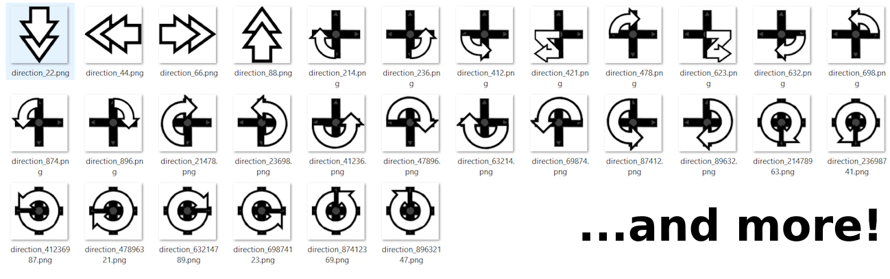 A full collection of icons that can be used for fighting game movelists.